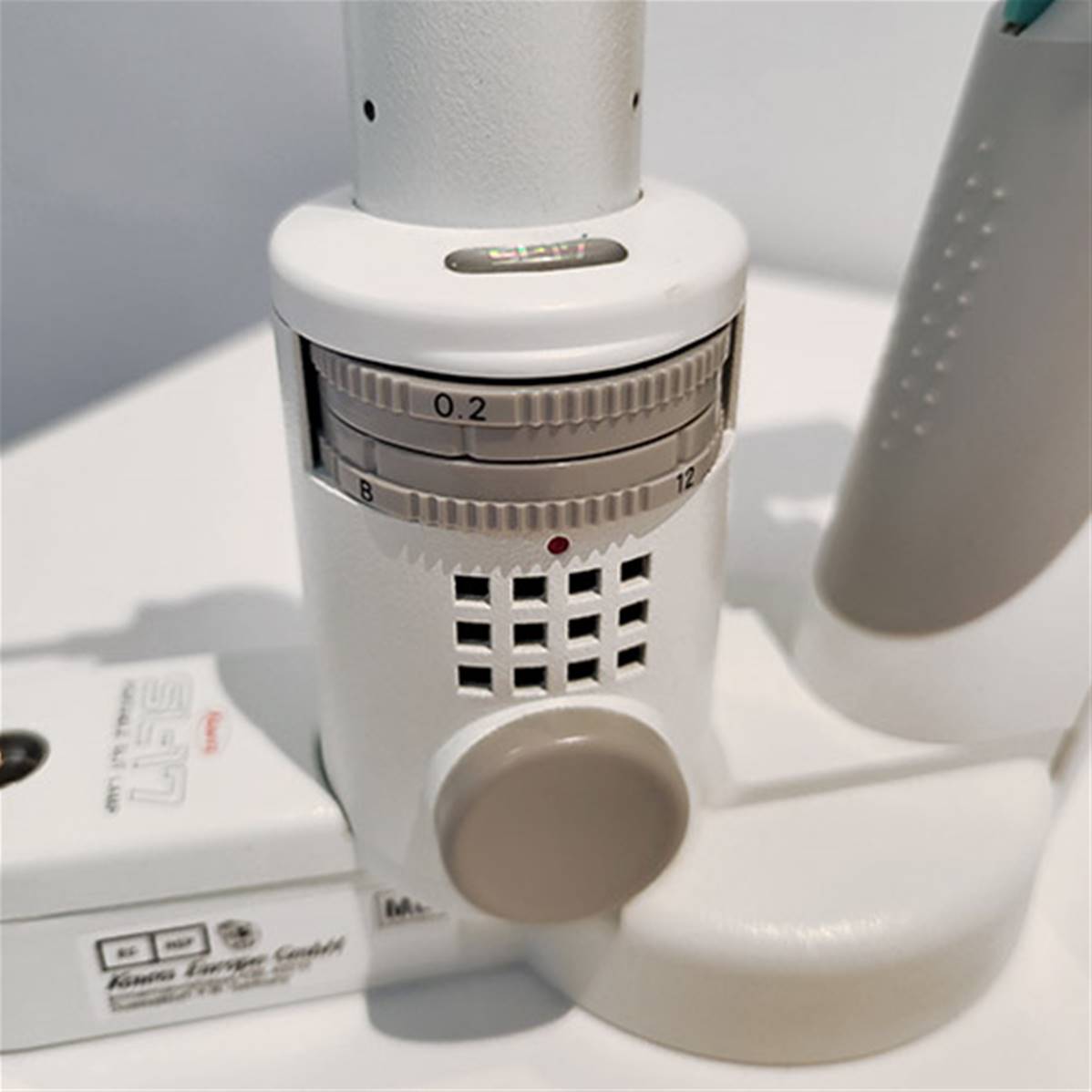 Source LED blanche 20 000 Lux : l’illumination est contrôlée par une molette directement accessible avec le pouce. La molette est rétro-éclairée pour une utilisation simple dans une salle d’examen sombre.